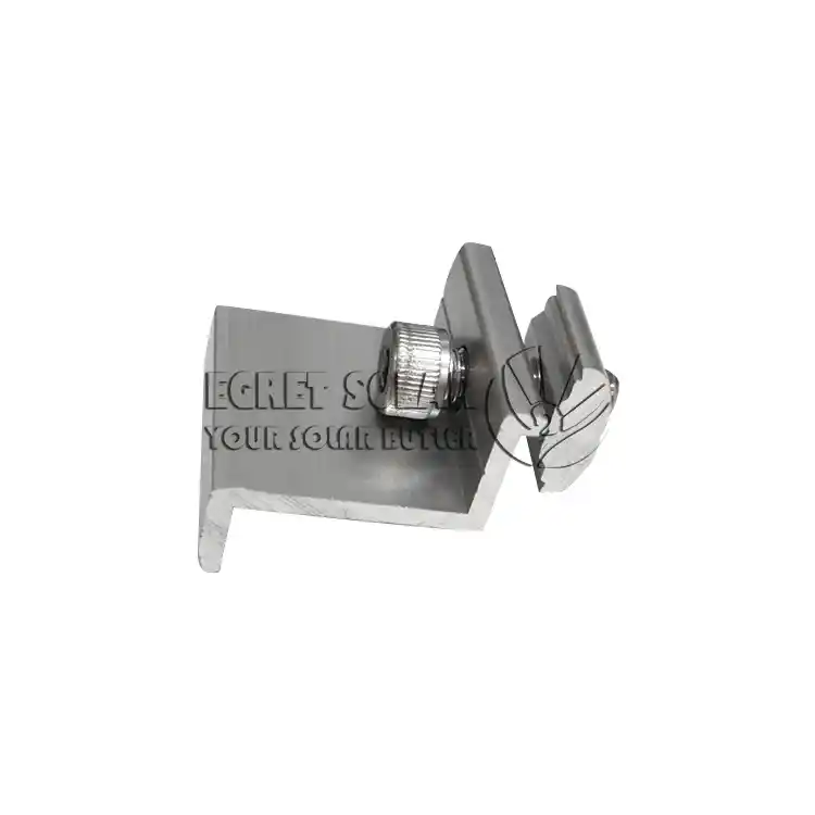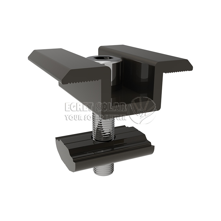 DeEndeklemmer afEgret Solar, ligesom den midterste trykblok, skal være kompatibel med tykkelsen af komponentrammen (normalt 30-40 mm), det kan væreTilpasseti henhold til forskellige tekniske løsninger, og det er lavet af anodiseret aluminiumslegeringsmateriale for at undgå korrosion med komponentrammen og spille en isolerende rolle på samme tid.