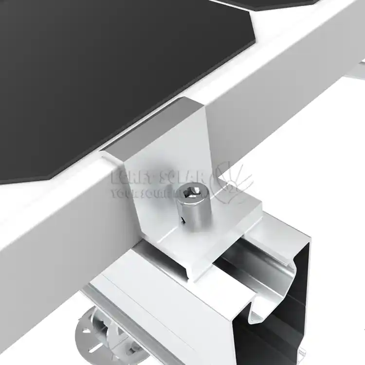 endeklemme solarfastgør rammen af den yderste komponent i hver række til enden af skinnen for at forhindre, at den glider af. Samtidig hjælper tryk på kanterne af komponenterne til at reducere invasionen af vind, regn og støv fra siderne. Den er placeret ved kanten af arrayet og bærer direkte den stærkeste vindløftekraft (opadgående trækkraft) og vindsugekraft, Det er et vigtigt kraftbærende punkt i det vindbestandige design og skal have tilstrækkelig mekanisk styrke.
