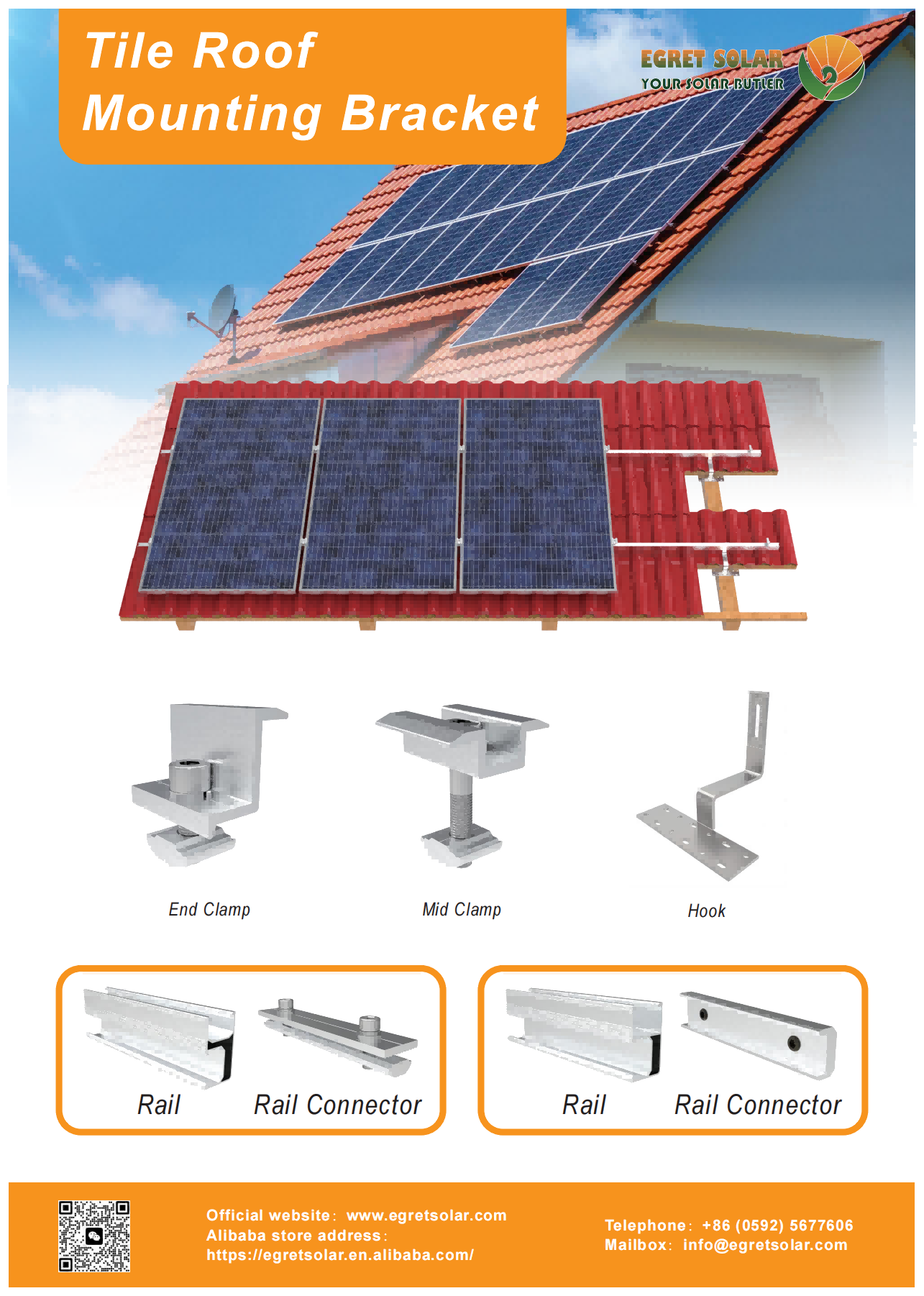 Egret Solar bragte mange prøver til udstillingen. De vigtigste produkter, der er fremmet, er forskellige i henhold til forskellige miljøer. Der er korte jernbanebeslagssystemer, l fodbeslagssystemer og justerbare for- og bagfodsystemer, der kan bruges på metalltag; Carbon Steel Montering System og Aluminium Carport Montering System til Solar Carports; Jordmonteringssystem med enkelt søjle og jordmonteringssystem med dobbeltkolonne til jordbrug; Flisestak monteringsbeslag bruges generelt til flisetag, og krogen og jernbanen kan vælges i henhold til den faktiske situation; Ballast tagmonteringssystem og stativsystem bruges oftest til flade tag. Fortæl os installationsscenariet, vindhastighed, snebelastning, budget osv., Og vi vil skræddersy designet til dig. Du kan stole på os af hele dit hjerte.