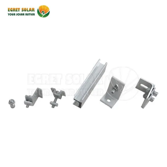 For at installere solcellepanelet på et metal tag fast, har det også brug for L fødder eller jernbaneklemmer, aluminiumskinne, jernbanekonstikker, slutklemmer og midterste klemmer, bortset fra stående sømklemmer.