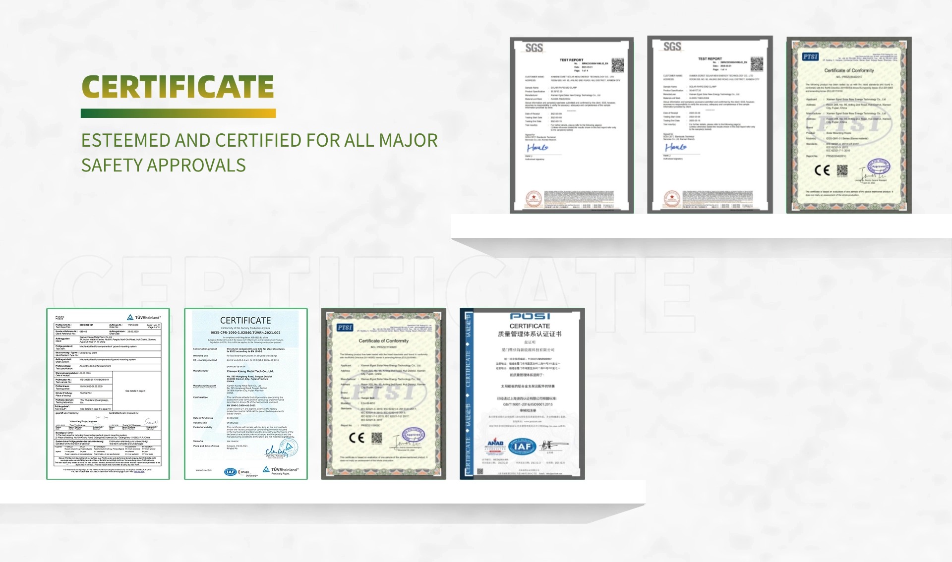 Egret Solar har stærke tilpasningskapaciteter. Hvis du har specielle tegningskrav, kan vi tilpasse og fremstille soltaksklemme, der imødekommer dine behov i henhold til dit design.